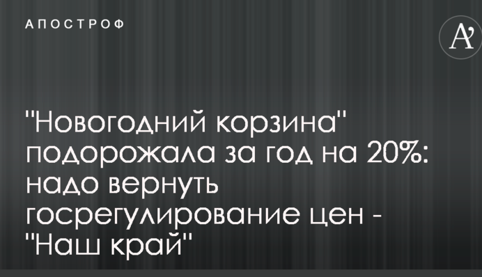 Попри заяви Уряду про низьку інфляцію, новорічний кошик продуктів подорожчав за рік на 20%, порахували в "Нашому краї", уряду слід терміново повернути державний контроль за цінами на харчі,
