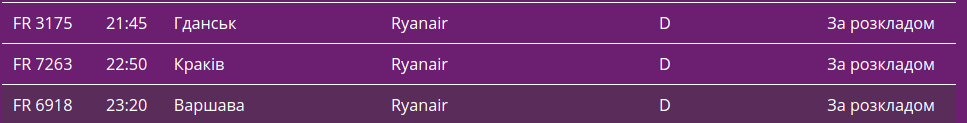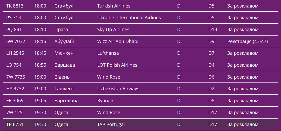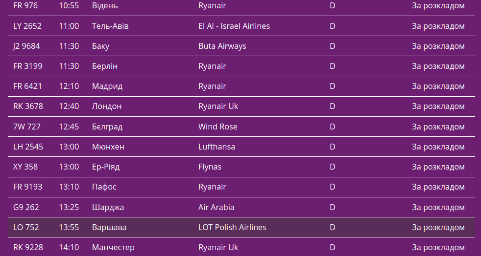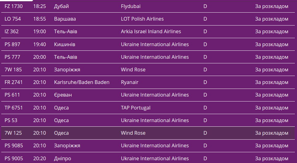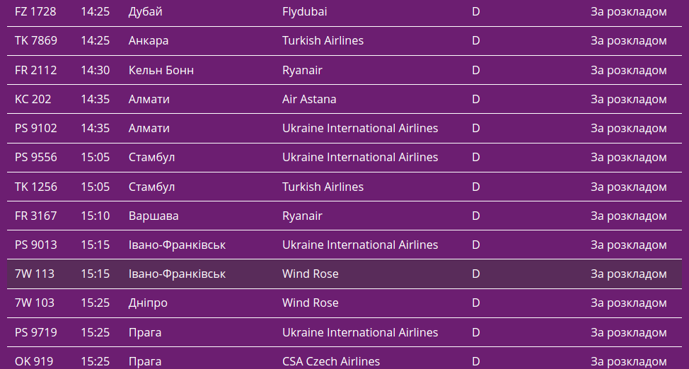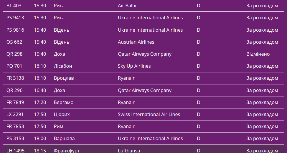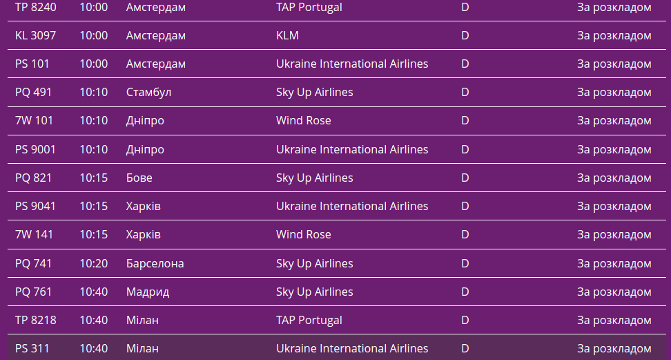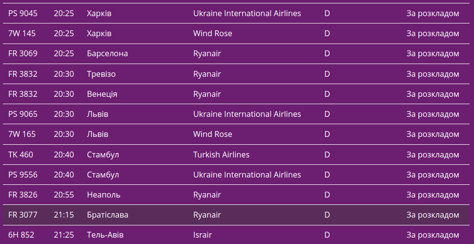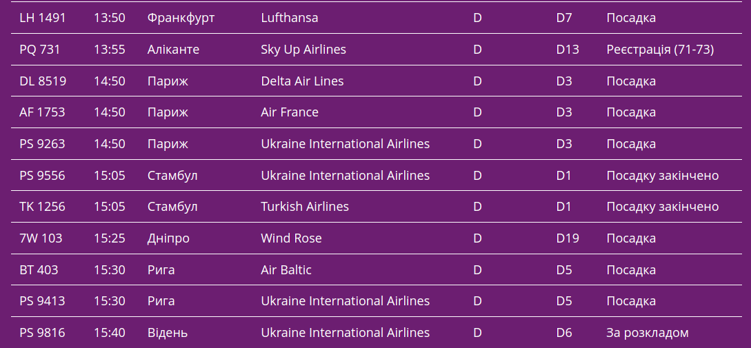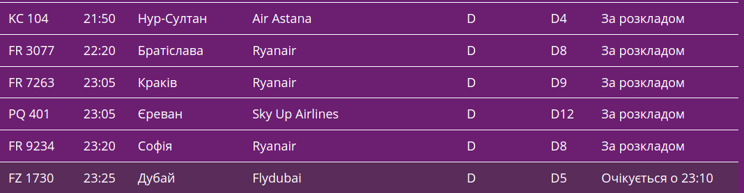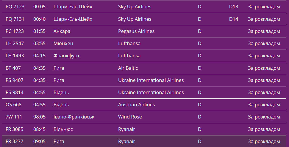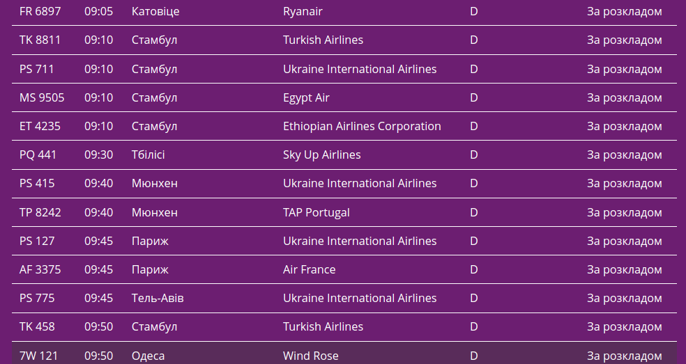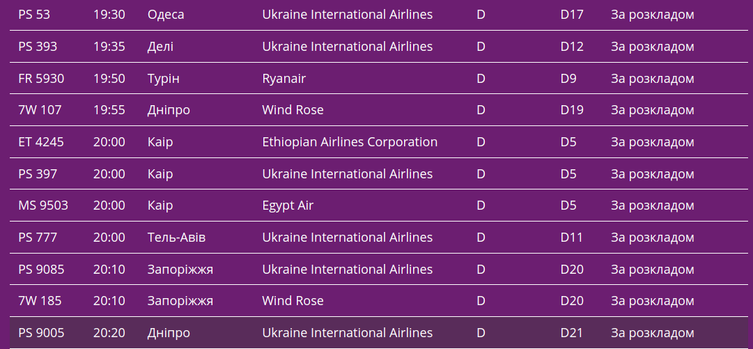 Про це свідчать дані онлайн-табло столичної "повітряної гавані".