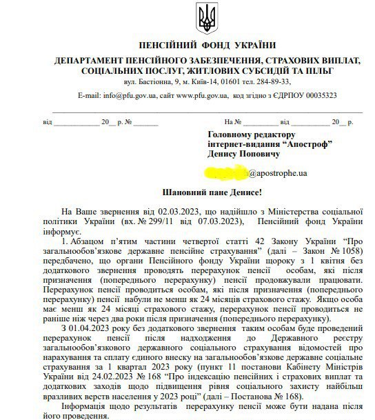 Про це свідчить відповідь Пенсійного фонду України (ПФУ) на інформаційний запит редакції "Апострофа".
