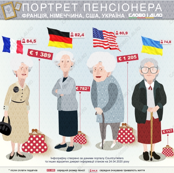 Журналісти "Слова та Діла " порівняли середньостатистичних пенсіонерів з України, США, Франції, Німеччини.