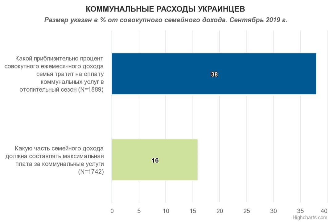 Кожна українська сім'я витрачає 38% від сукупного заробітку на комунальні послуги щомісяця. Такі дані опубліковано в свіжому дослідженні Research & Branding Group за підсумками вересня.