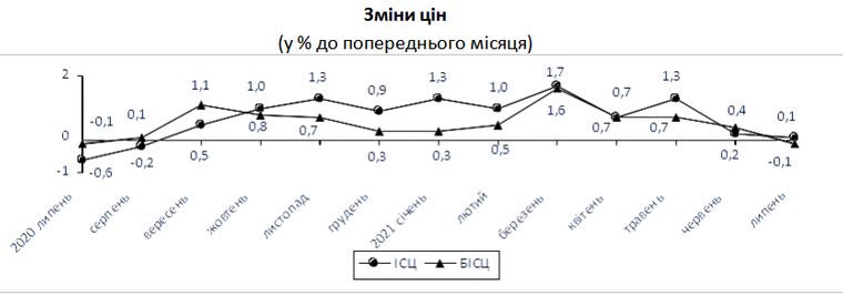 У липні зростання споживчих цін в Україні в річному вимірі прискорилося до 10,2%. Інфляція на споживчому ринку в липні в порівнянні з попереднім місяцем склала 0,1%, з початку року ㅡ 6,5%.
