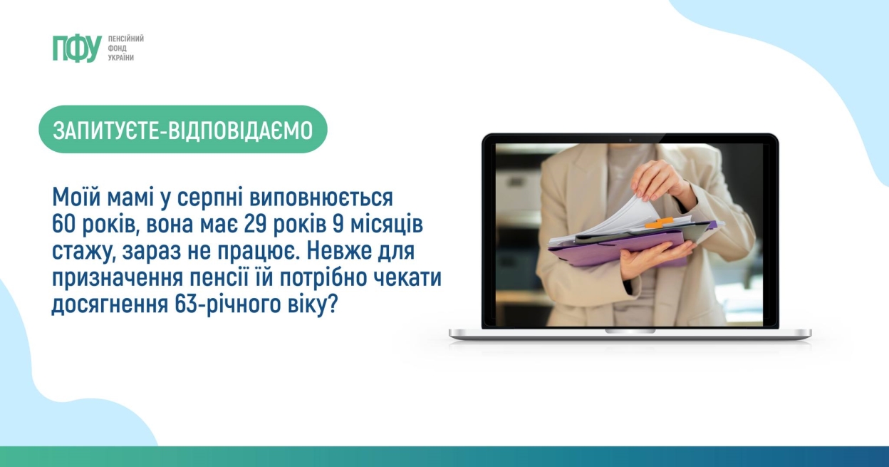 Якщо особі в 2023 році виповнилося 60 років, а 30 років страхового стажу вона набуде пізніше, то за призначенням пенсії вона має право звернутися з моменту набуття вищезазначеного розміру страхового стажу, оскільки тривалість необхідного страхового стажу визначається на час досягнення пенсійного віку, пояснили у ПФУ.