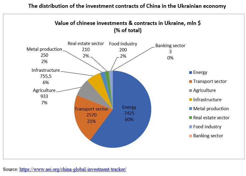 However, the general picture showcases that Ukraine is currently out of the main investment focus of China. Only 1% of total Chinese investment was directed to the Ukrainian economy in recent years.