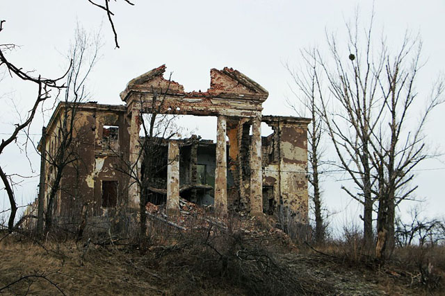 Abandoned and heavily damaged buildings are seen in Sloviansk city of Donetsk Region, Ukraine on February 11, 2016