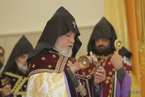 Patriarch and Catholicos of All Armenians Karekin II during the consecration of the Church of St. Grigor Lusavorich in Dnipro, March 17, 2018. Photo: Ukrinform