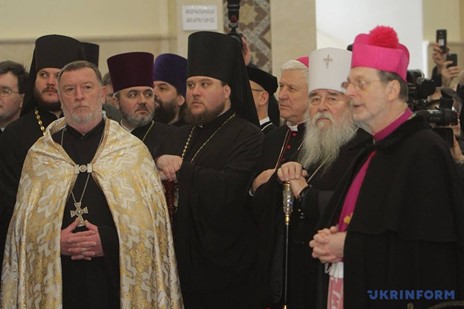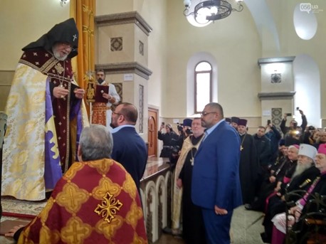 Representatives of religious denominations at the consecration of the Church of St. Grigor Lusavorich in Dnipro, March 17, 2018. Photo: Ukrinform