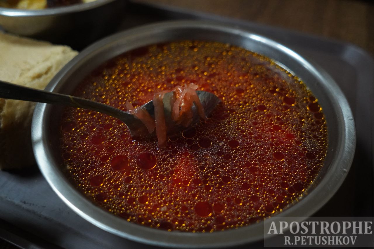 Lunchtime arrives. The column of prisoners neatly forms in the same corridor, heads cautiously bowed under the stern gaze of Stepan Bandera, whether from a portrait or the heavens. With hands folded behind their backs and a slight hunch, they shuffle into the dining area to wash their hands and have their meals.