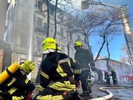 In the Shevchenkivskyi district, drone debris fell on a 5-story residential building. Apartments on the 3rd and 5th floors caught fire. During the firefighting efforts, the bodies of 2 people were discovered.