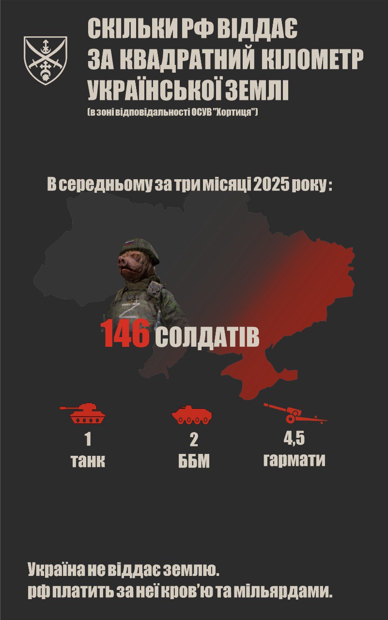 The Russian occupation army loses about 146 soldiers and a batch of equipment for every square kilometer of Ukrainian land.
