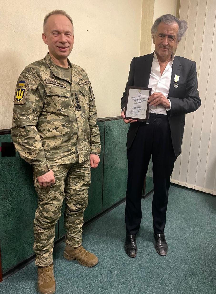 Commander-in-Chief of the Armed Forces of Ukraine Oleksandr Syrsky presented the award to French philosopher, writer, documentary filmmaker, political journalist, and intellectual Bernard-Henri Levy.