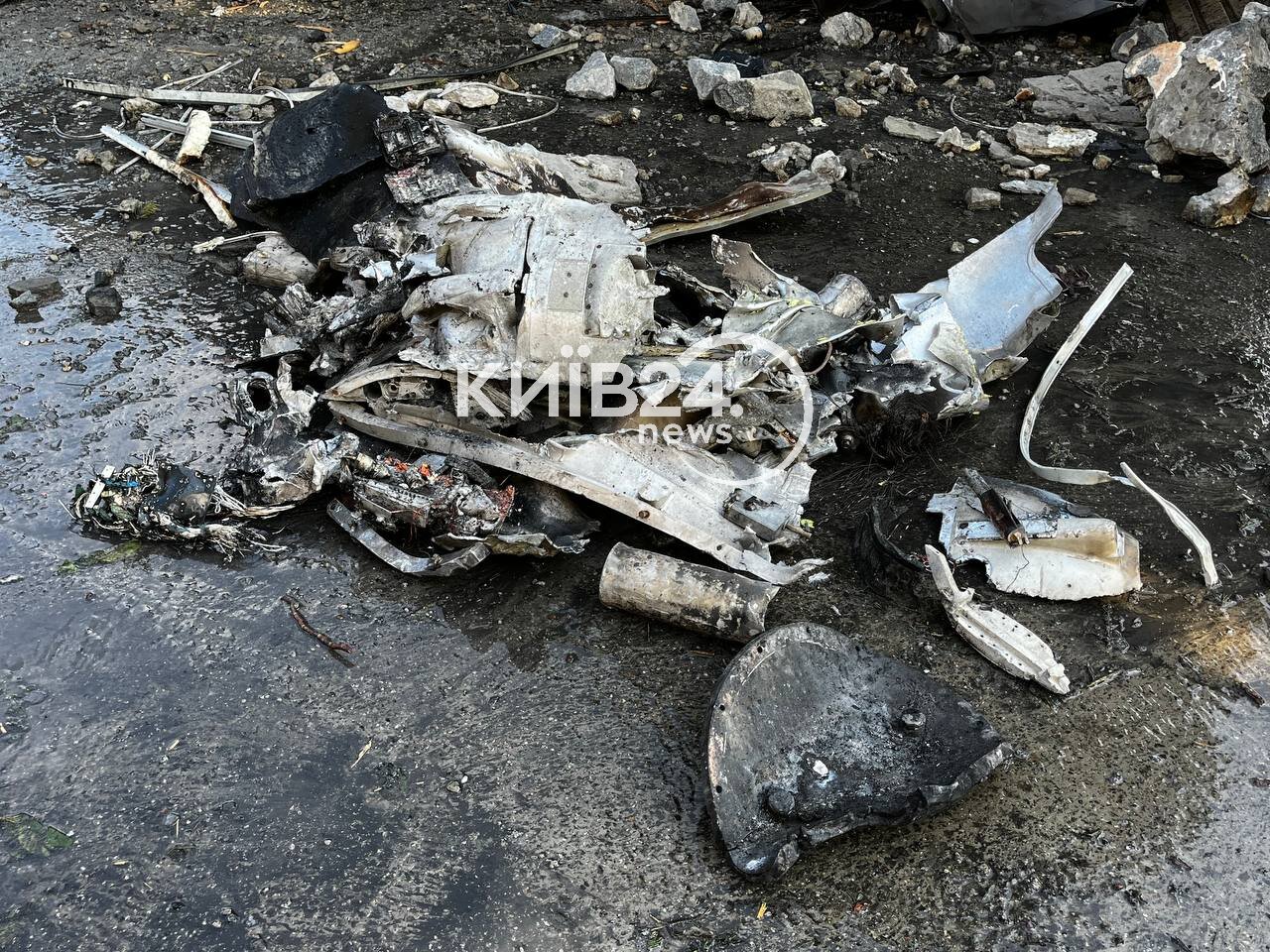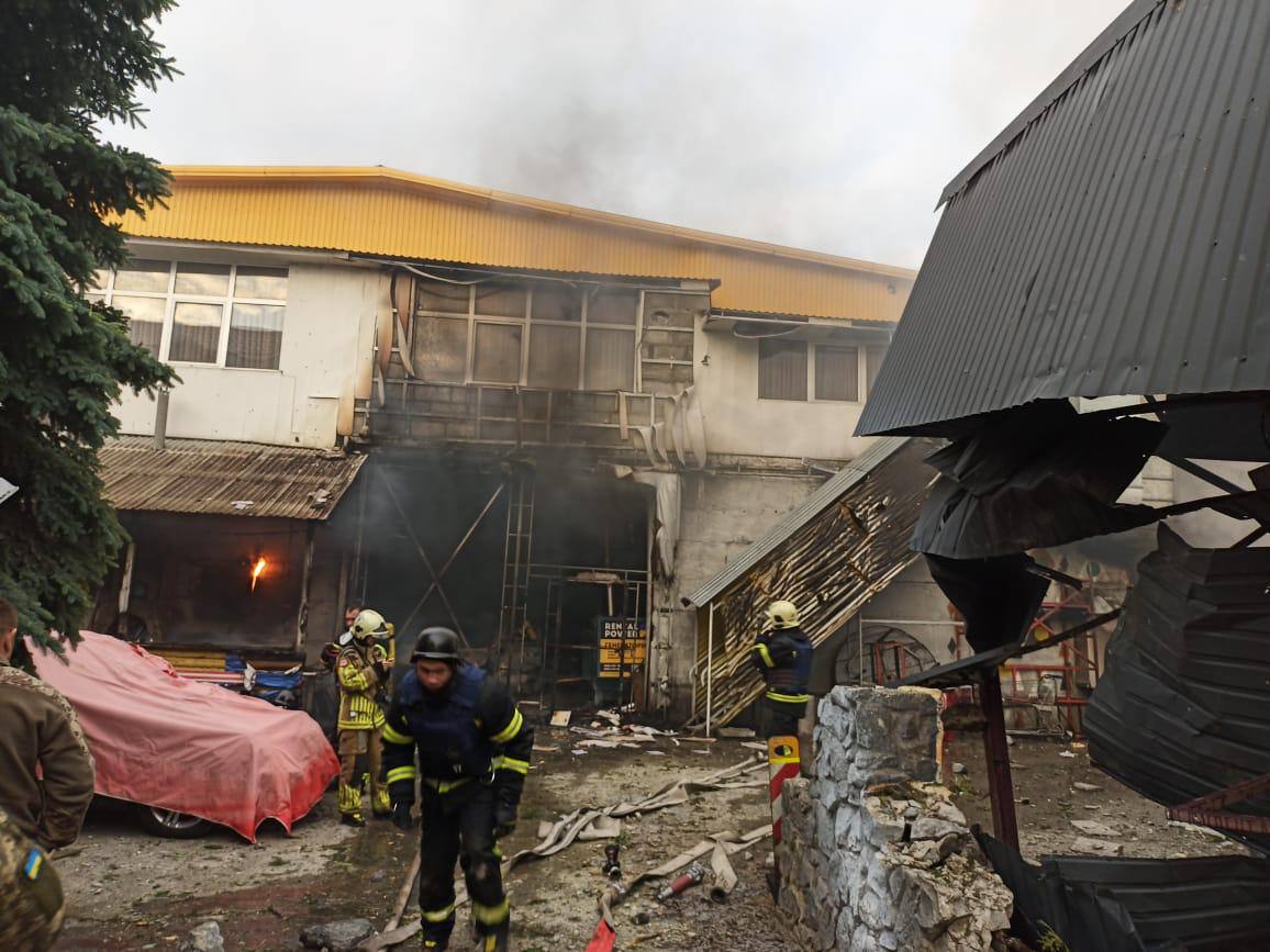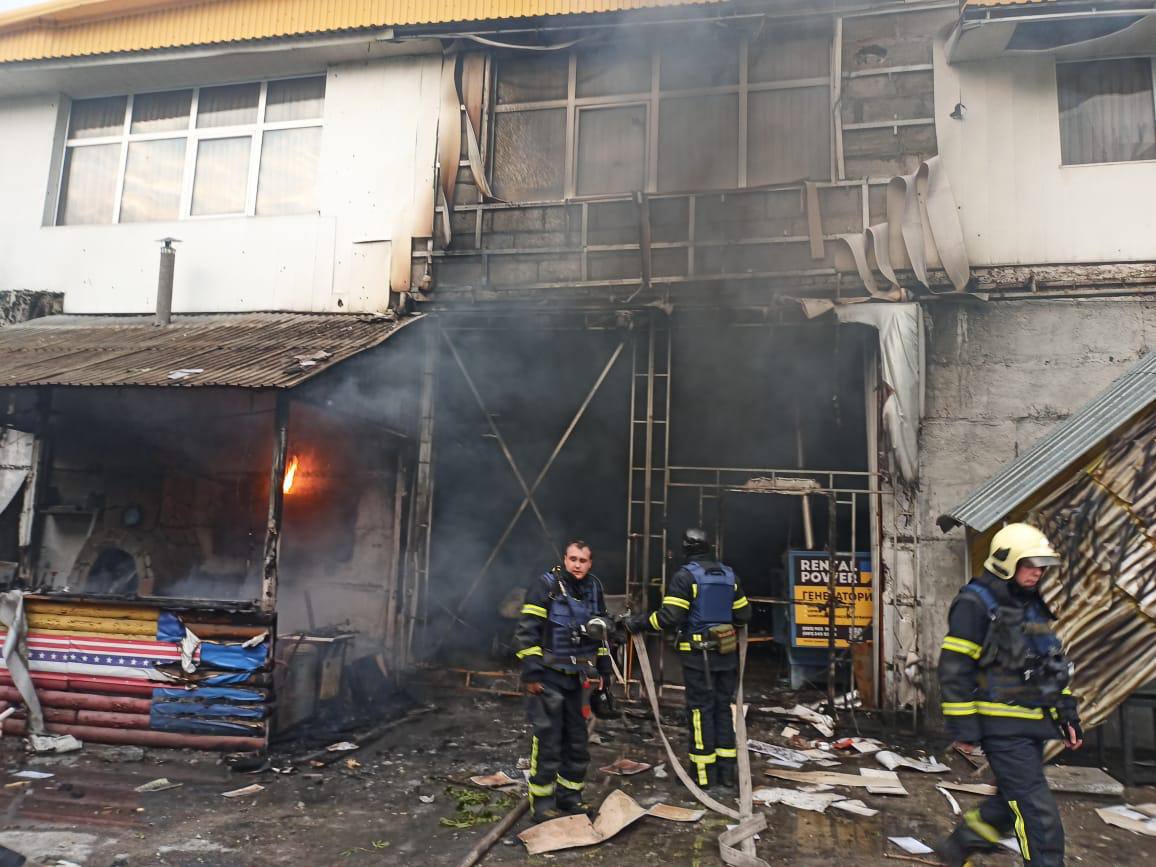 The Kyiv City Military Administration (KCMA) published photos of the aftermath of the Russian missile debris on its Telegram channel - the photos show firefighters trying to extinguish the fire.