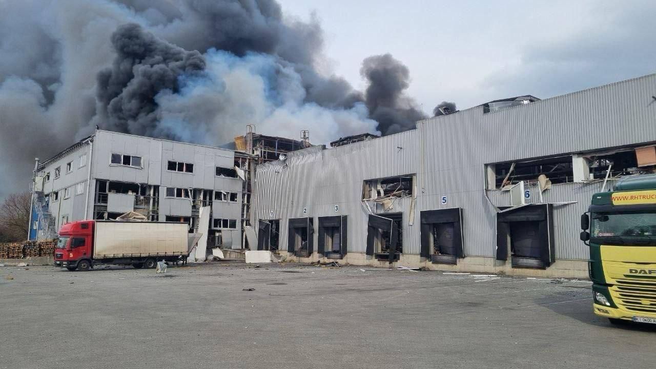 Rescuers are fighting the fire to prevent it from spreading to production facilities. Civilian facilities were affected: warehouses with diapers, wet wipes, tea, foil, and household goods.