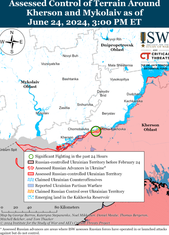 ISW reports that the General Staff said that on June 24, the enemy attacked: