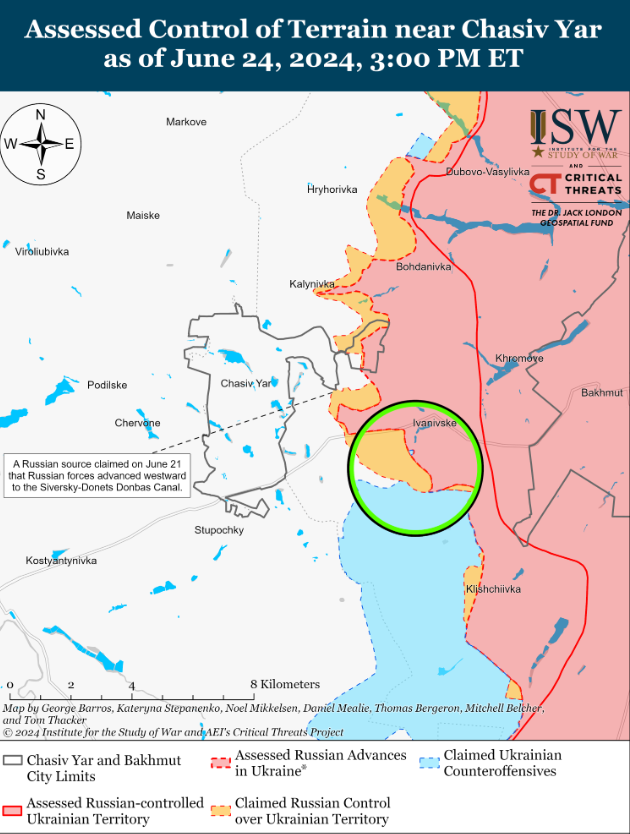 In addition, enemy continued offensive operations near Chasiv Yar on June 24, but there were no confirmed changes to the frontline.