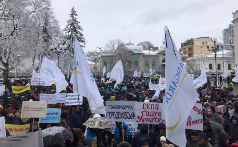About 3,000 employees of UkrLandFarming and Avangard agricultural holdings, and the activists held a rally outside the Verkhovna Rada and the President's Office HQs, calling to protect the company from unlawful harassment by law enforcement agencies.