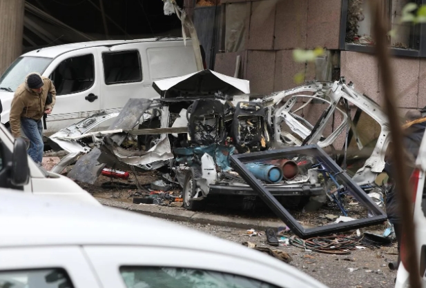 According to preliminary data, it is possible that a cylinder with welding gas detonated. It was in the car of Eningia Energetika employees when they came to the TV center to fix the air conditioning system; they had a welding gas cylinder in their car.