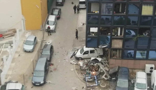 The explosion blast was so strong that it knocked out windows in nearby buildings and damaged all the cars parked nearby.