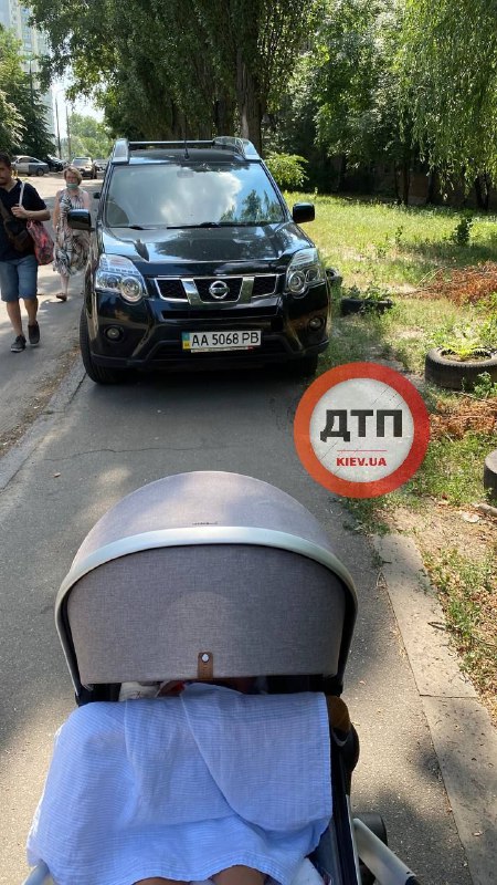 На вул. Вузівська, поблизу Севастопольської площі, на фото потрапив автомобіль Nissan, який припаркували на стежці для пішоходів. Знімок зробила мати з коляскою, яка, на відміну від інших киян, просто так обійти порушника по газону не зможе.