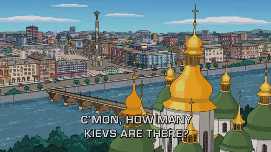 - Перша серія 23 сезону "Сімпсонів" розповідає про українську мафію, там миготить мальована столиця України.