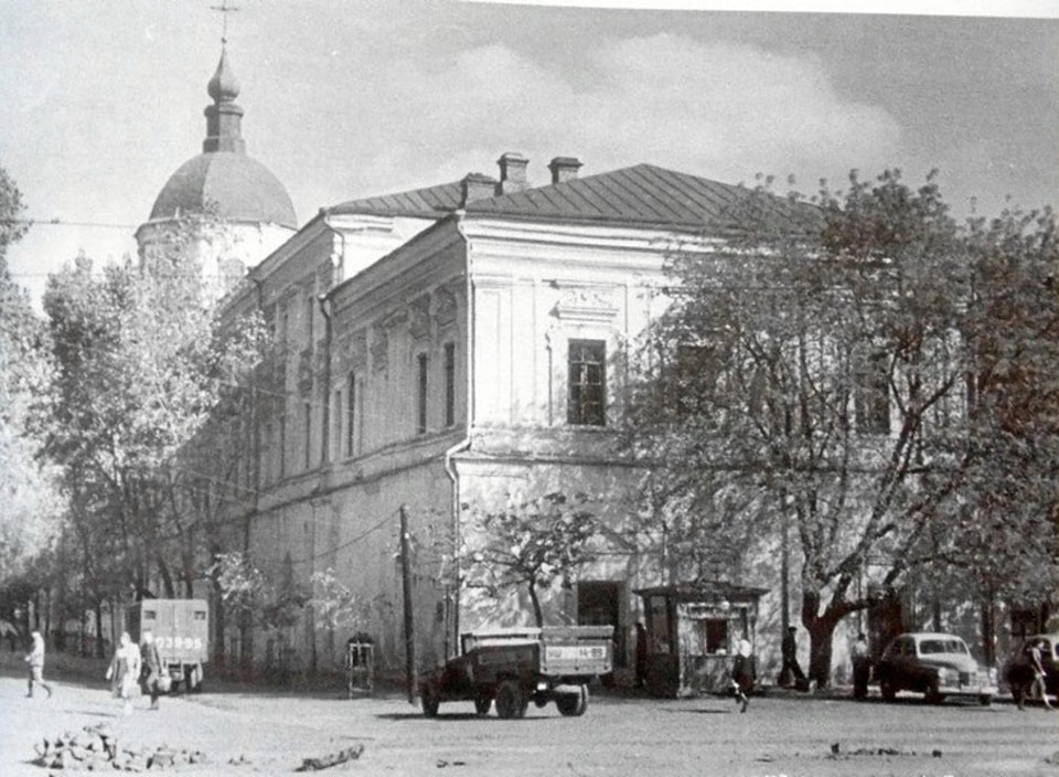 Через дорогу сьогодні розташовуються навчальні корпуси та бібліотека Києво-Могилянської академії. Раніше в будинку на розі Контрактової площі розташовувалися келії Братського монастиря. У 1930-х роках монастир ліквідували, а Богоявленську церкву підірвали в 1934 році. Келії були неушкоджені та передані новоствореному військовому училищу. Нині старе приміщення училища використовується відродженою у 1992 році Києво-Могилянською академією.