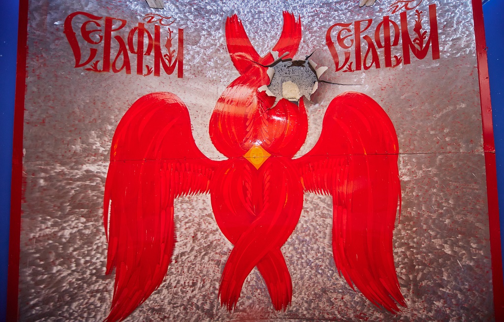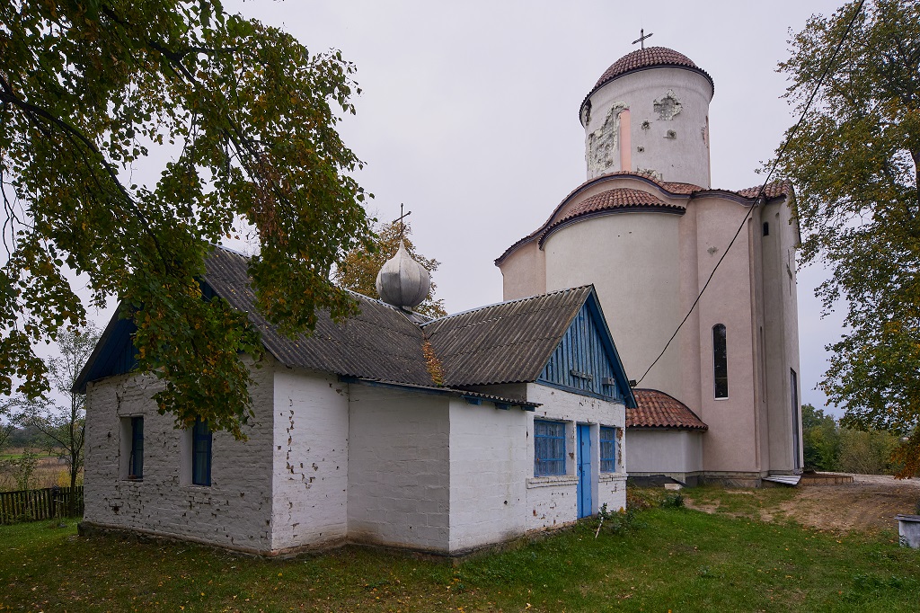 Проте після початку повномасштабного вторгнення російських військ село Липівка було окуповане: "Храм перетворився в бомбосховище для дітей, жінок та людей похилого віку. На території церкви йшли запеклі бої, під час яких церкву розстріляли. Особливо постраждала баня, в якій вже були змонтовані архангели, серафими та пантократор. У архангелів повиривало груди, у серафимів відірвало крила, пантократора було посічено уламками. Художники вирішили залишити ці розписи в такому стані для нащадків та як приклад варварства загарбників. Але війна не зупинила роботу художників. Разом з Богданом Батрухом прийняте спільне рішення завершити розписи… Ми вирішили виставити другу, останню частину розписів разом з розписаним макетом храму. В експозицію проєкту я включив фотовиставку, присвячена розстрілу церкви", – розповів Юрій Комельков.