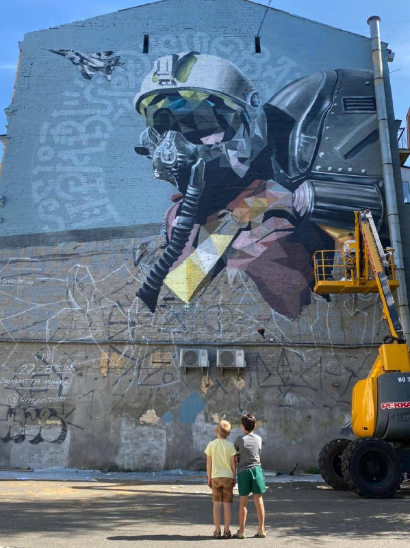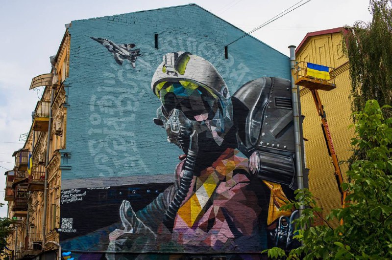 Для створення муралу запросили відомого художника-мураліста Андрія Ковтуна. Для своєї роботи він обрав фотографію одного із пілотів 40-ої бригади тактичної авіації, що ймовірно служить зараз в лавах Повітряних Сил. На зображенні пілот - "привид Києва" в кабіні знаменитого літака Міг-29, що стоїть на озброєнні в ПС ЗСУ.