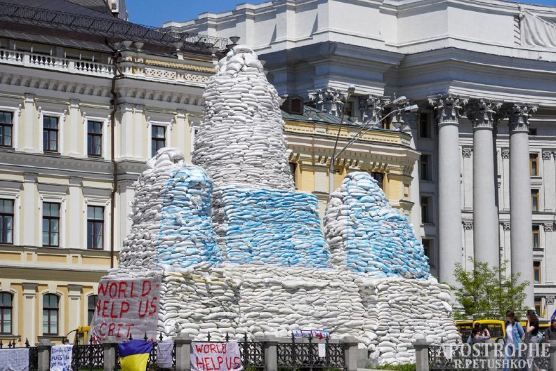 Власний кореспондент "Апострофа" пройшовся вулицями Києва і сфотографував, чим живе українська столиця, а також зробив кілька світлин з головними визначнии пам'ятками міста. Про повномасштабну війну з РФ мешканцям міста можуть нагадувати мішки з піском, а також патріотичні графіті.