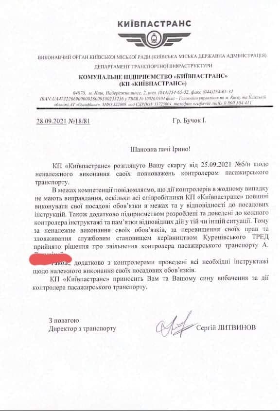 Також в "Київпастранс" повідомили, що провели профілактичну бесіду зі своїми співробітниками, щоб уникнути подібних випадків у майбутньому.