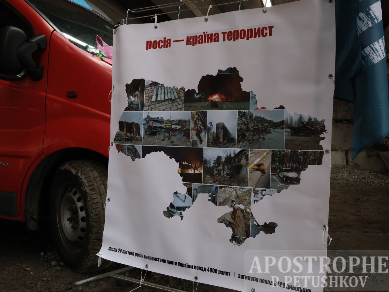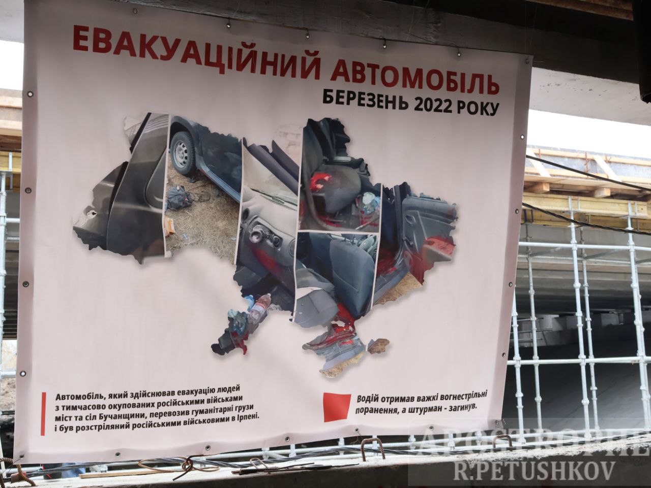 Окрім того, були продемонстровані військові артефакти та автомобілі, які приймали безпосередню участь в евакуації населення, мають пошкодження від куль та снарядів, і в яких трагічно загинули люди.