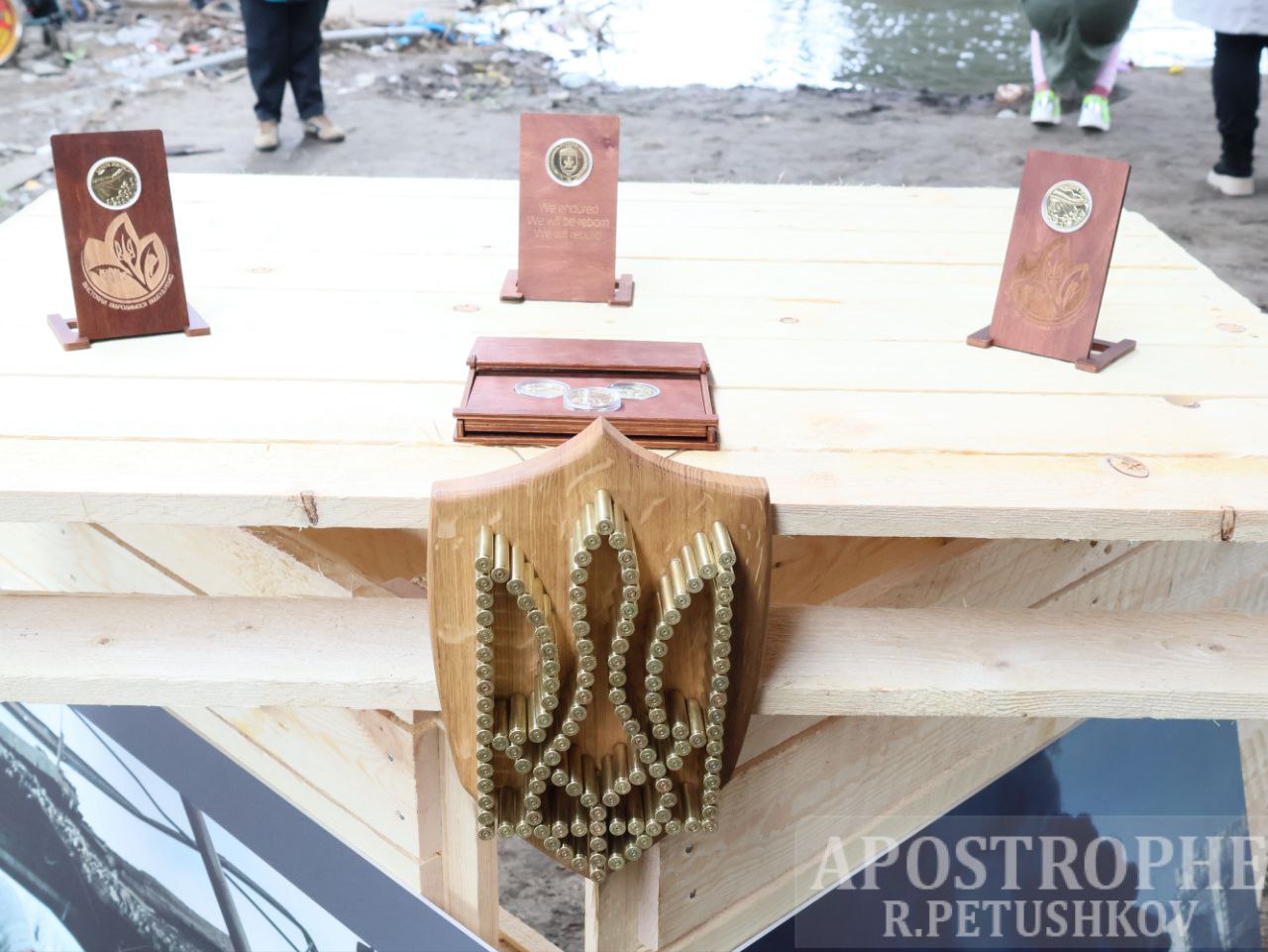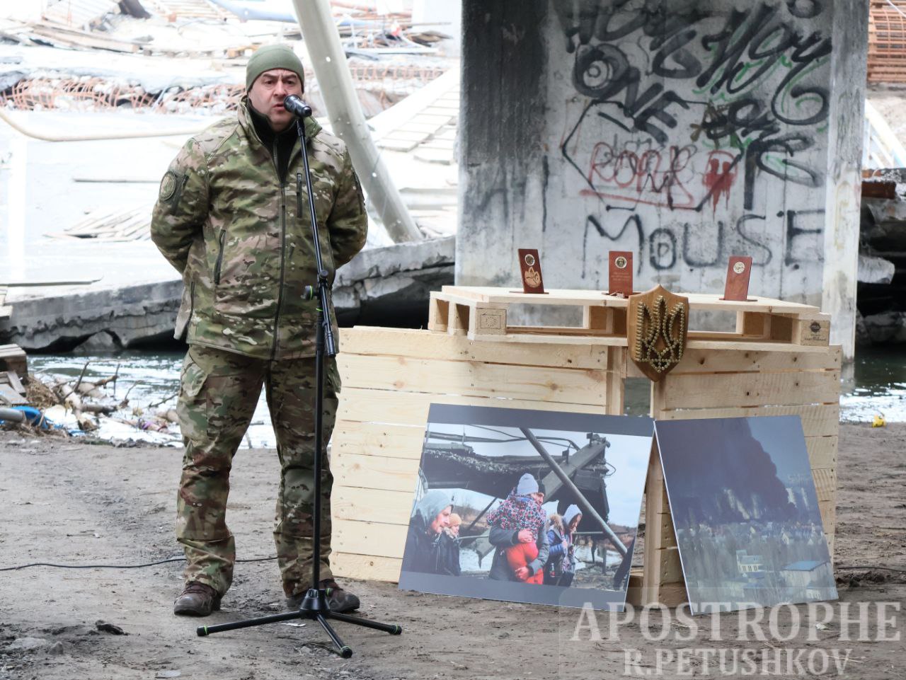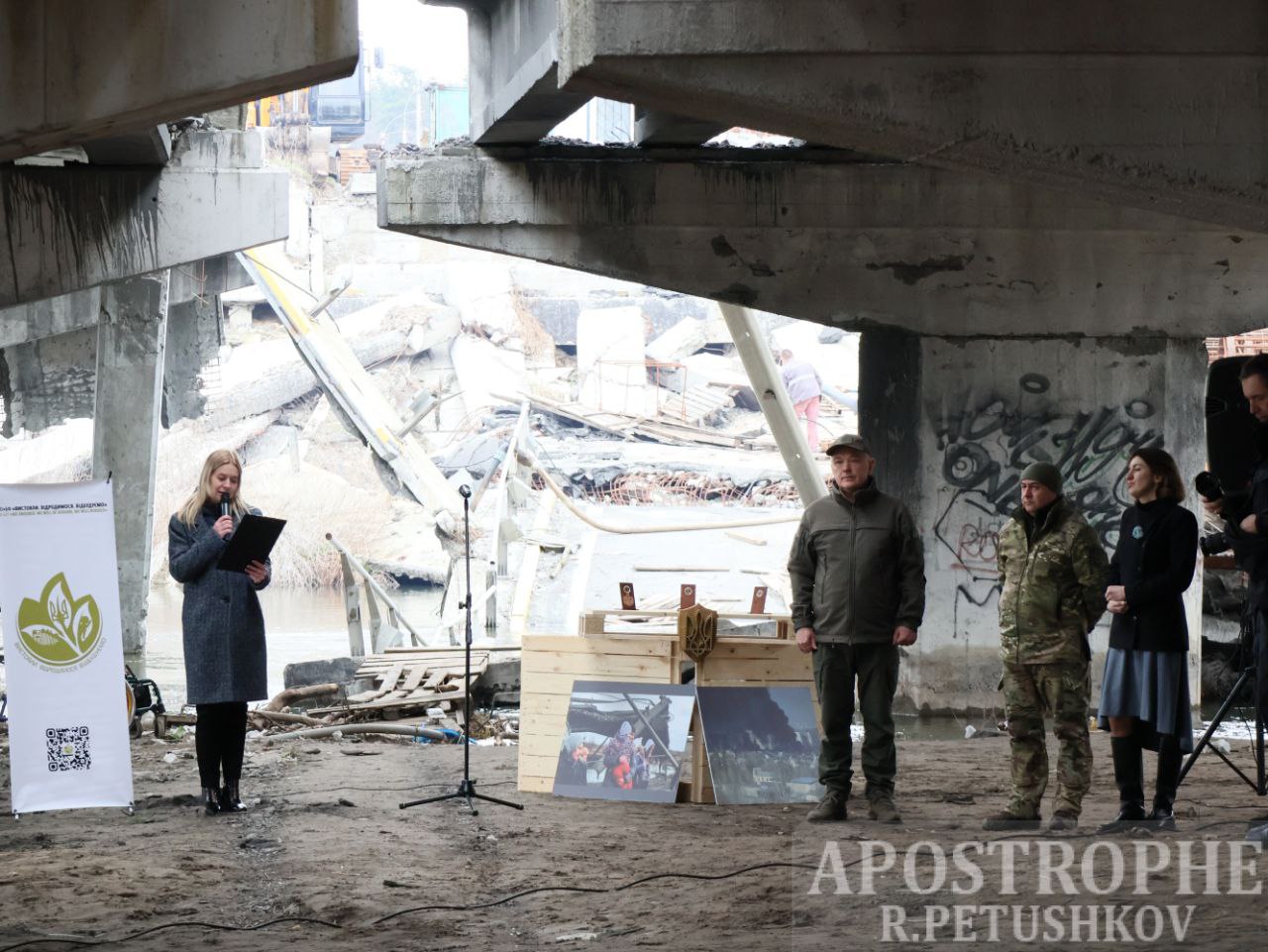 Під Романівським мостом організатори презентували пам"ятну монету "Дорога життя" із зображенням Романівського мосту через річку Ірпінь, який під час ворожих атак став дорогою життя для тисяч мирних громадян України, які буди змушені покинути свій дім.