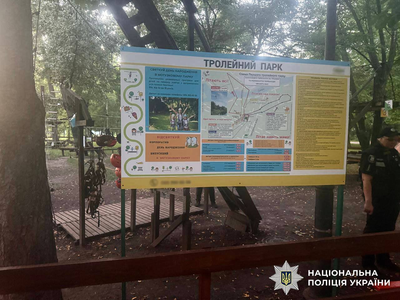 Увечері 1 серпня в парку "Перемога" в Києві двоє дітей зіткнулися під час катання на канатній дорозі. Обоє отримали тілесні ушкодження та були госпіталізовані. Поліція розпочала кримінальне провадження.