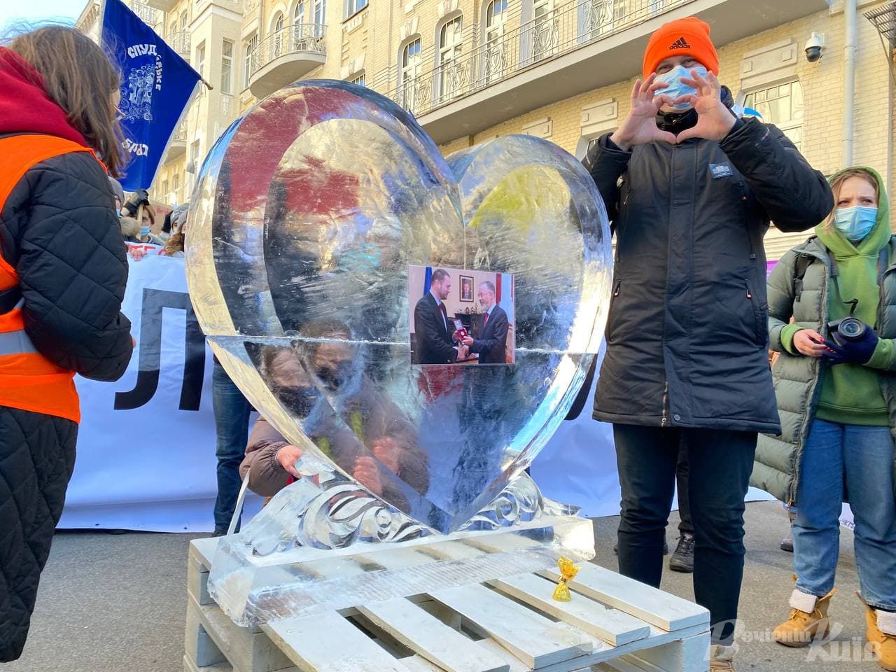 У День Святого Валентина студенти вийшли на "романтичний" мітинг проти Сергія Шкарлета, а свої вимоги до міністра освіти висловили на плакатах-валентинках.