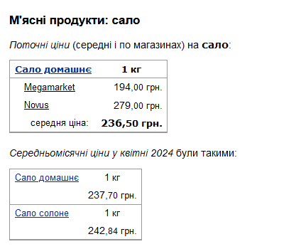 У Києві наприкінці травня 2024 року на ринку вартість домашнього сала зросла до космічного рівня. Ціни кількаразово перевищують середні в магазинах по країні.