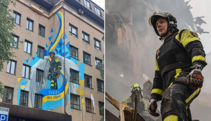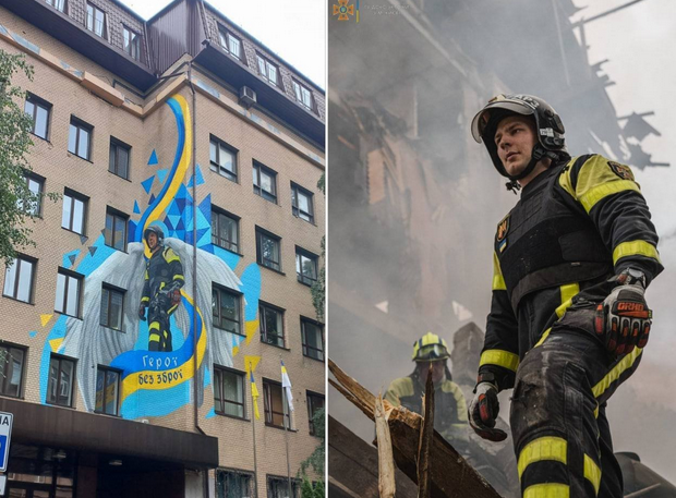 "Героєм муралу став київський рятувальник Юрій Плетньов. Саме його фото, зроблене під час гасіння пожежі, стало основою для стінопису", - йдеться у повідомленні.