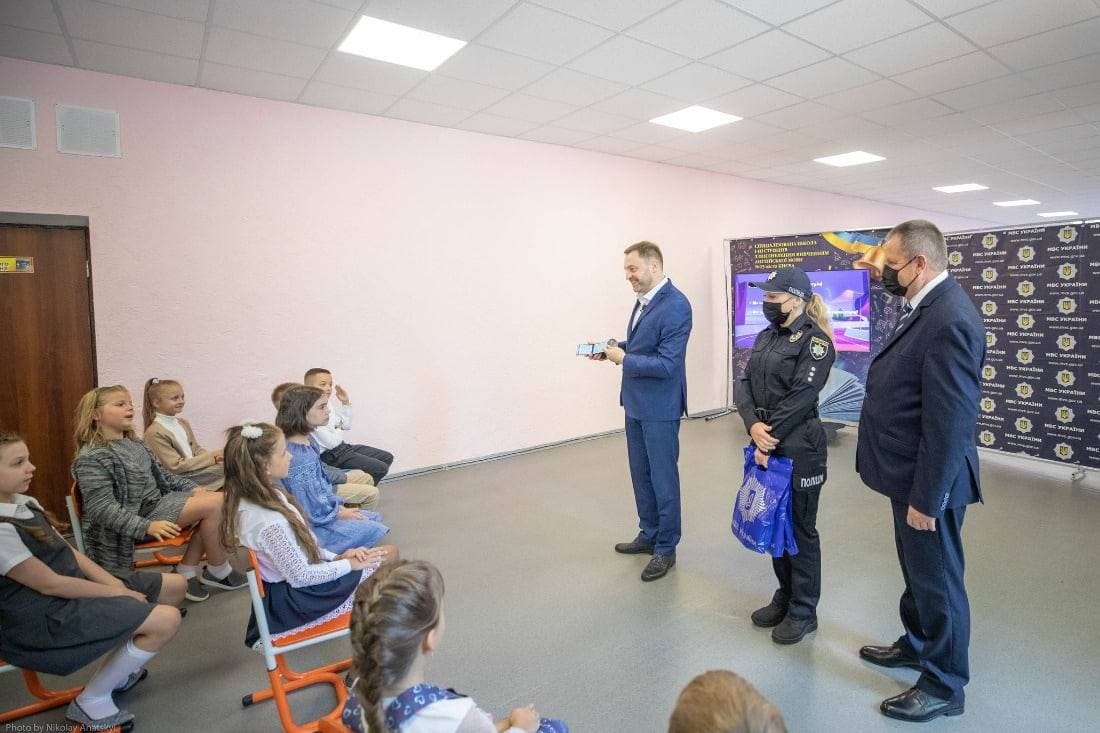 Міністр та офіцери поліції розповіли дітям правила дорожнього руху та безпечної поведінки на вулиці. Після конкурсів, малечі дозволили посидіти в службових авто.