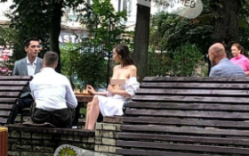 Кияни спостерігали в центрі столиці напівголу дівчину, яка грала в шахи з чоловіками в офісних костюмах.