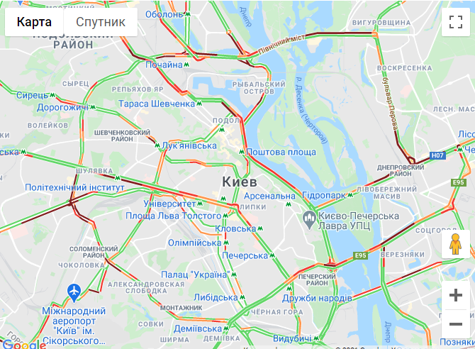 Станом на 8:25 в Києві утворилися серйозні затори на всіх мостах через Дніпро. Найскладніше з рухом по Північному мосту.
