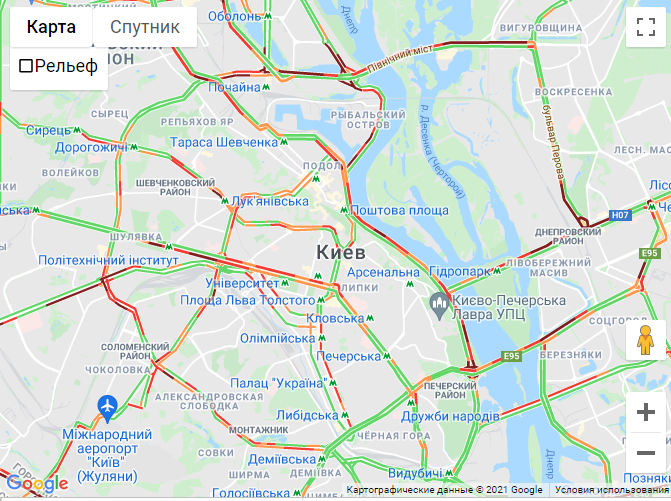 Також не проїхати на Набережному шосе, проспекті Перемоги, проспекті Бажана. Пробки утворилися і на вулиці Набережно-Хрещатицькій, вулиці Набережно-Рибальській, на Індустріальному мосту, Караваєвих дачах і на Кільцевій дорозі.