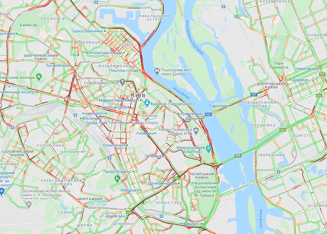 Паралізовано рух транспорту на бульварі Дружби народів, проспекті Науки та вулиці Саперно-Слобідській. Утворилися затори також на одній з ділянок проспекту Лобановського.