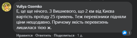 За словами користувачів соцмереж, щоб доїхати з Василькова до столиці, потрібно заплатити 41 грн. Ті, хто їздять на роботу до Києва вдень, будуть платити майже 100 грн. Крім того, проїзд з Вишневого до Києва, який знаходиться на відстані близько 2 км, обійдеться в 25 грн.