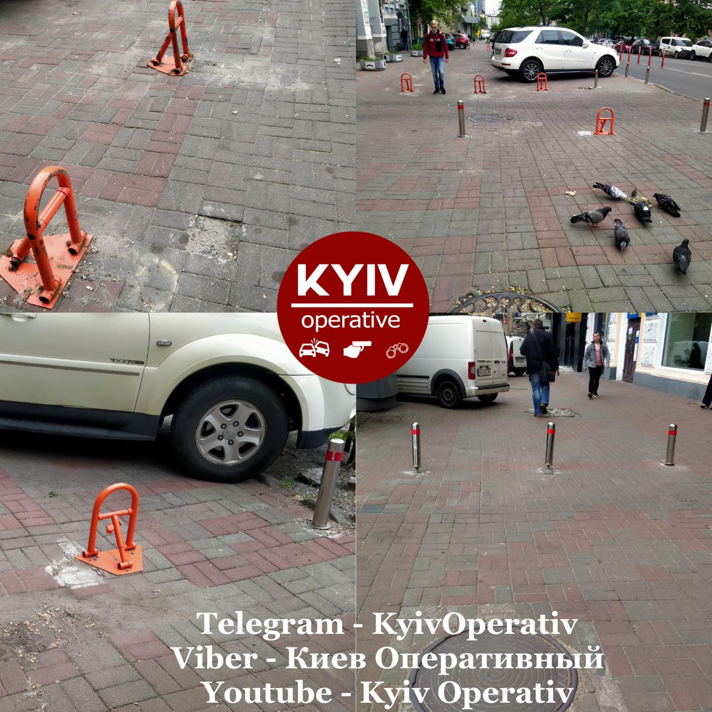 Як сказано в підписі до знімків, на вулиці Шота Руставелі невідомі особи вирвали антипаркувальні стовпчики і замість них встановили паркувальні бар'єри з замками.