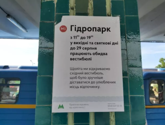 Один з вестибюлів станції метро "Гідропарк" в зимово-весняний період взагалі не працює. На даний момент він відкритий для пасажирів у святкові та вихідні дні з 11:00 до 19:00. Таке правило буде діяти до 29 серпня.