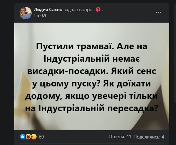 Із 12 серпня в Києві відновили рух швидкісного трамвая від станції "Старовокзальна". Кияни в соцмережах незадоволені, що трамвай не зупиняється біля станції "Індустріальна".