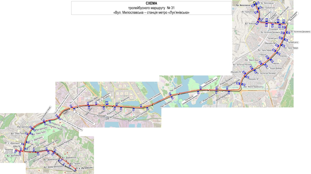 У Києві подовжили маршрут тролейбуса №31 - тепер цей тролейбусний маршрут курсує від вулиці Милославської до станції метро "Лук'янівська".