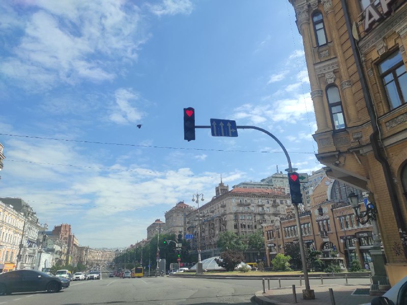 7 липня жителі Києва помітили світлофор, який показував червоний сигнал у вигляді серця. 12 числа на місці стояв уже звичайний сигнал круглої форми.