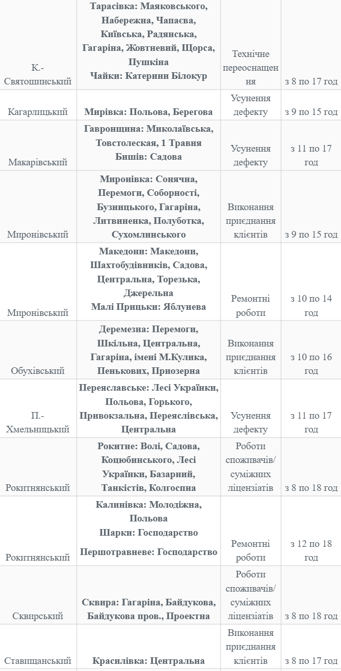 Знеструмлення пов'язані з проведенням планових ремонтних робіт на підстанціях та повітряних лініях. Як зазначено в повідомленні постачальника, відключення світла - вимушений захід, спрямований на безпеку працівників на період проведення ремонтів.