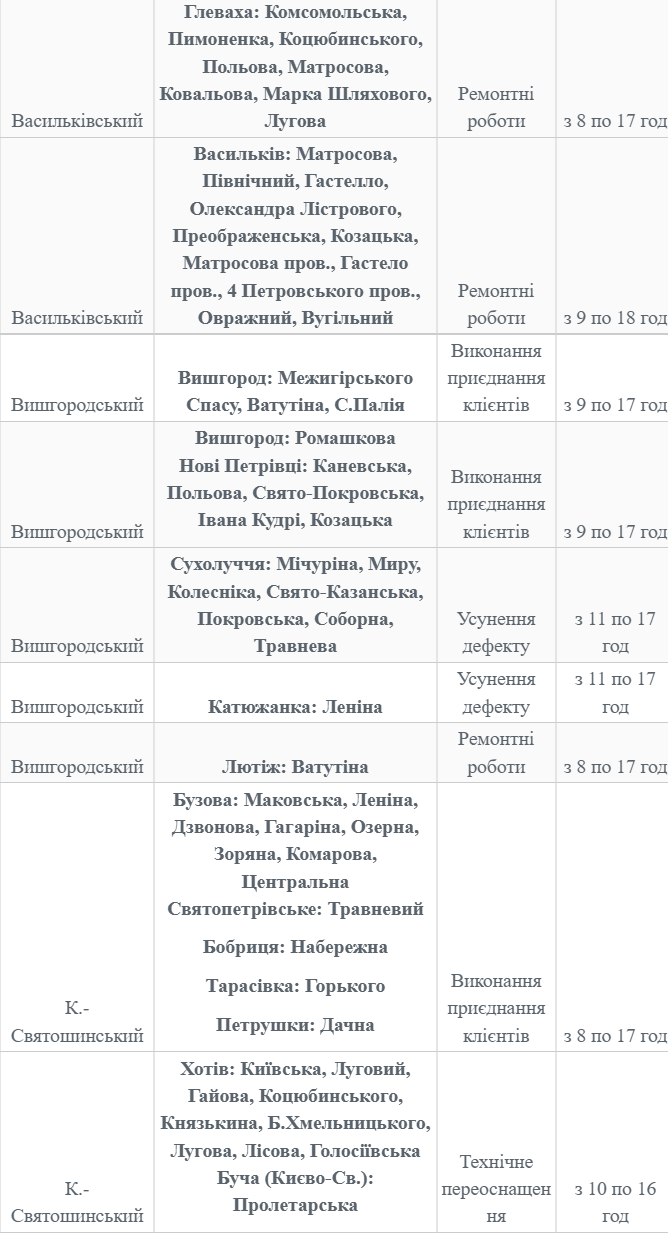 У вівторок, 25 січня, у деяких населених пунктах Київської області призупинять подачу електроенергії до житлових будинків та громадських установ.