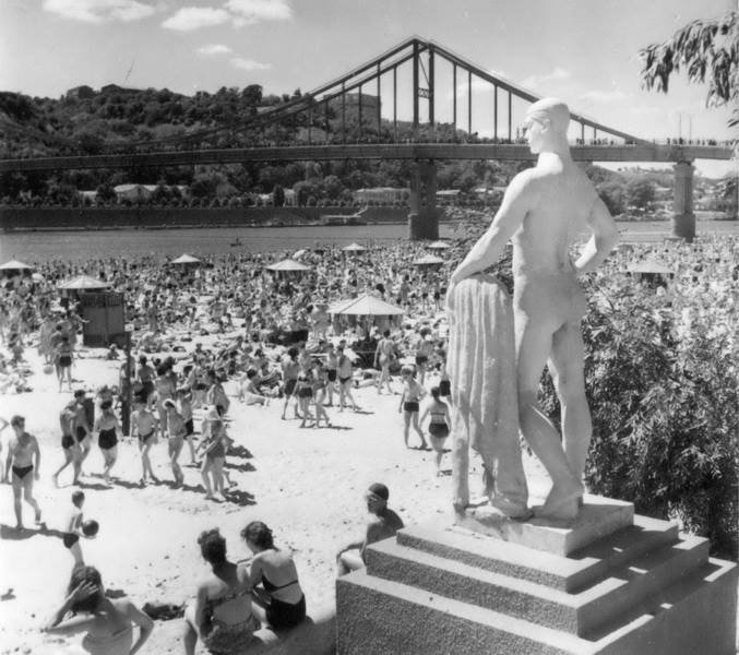 У літній сезон 1918 року в Києві був відкритий перший громадський пляж на Трухановому острові. Зону відпочинку організували німецькі військові, які перебували у місті у часи гетьмана Павла Скоропадського. Пляж швидко став популярним серед киян, і вони не жаліли 5 копійок на один кінець поїздки на човні, оскільки тоді ще не існувало Пішохідного мосту, який з'єднував острів із містом.