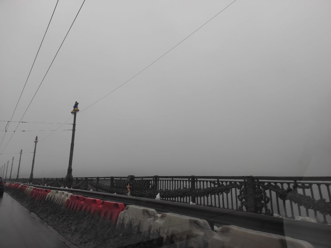 Через погіршення погодних умов монумент "Батьківщина-Мати" не видно з моста Патона. Густий туман, який окутав Київ, також посприяв ускладненому руху транспорту на деяких вулицях столиці.